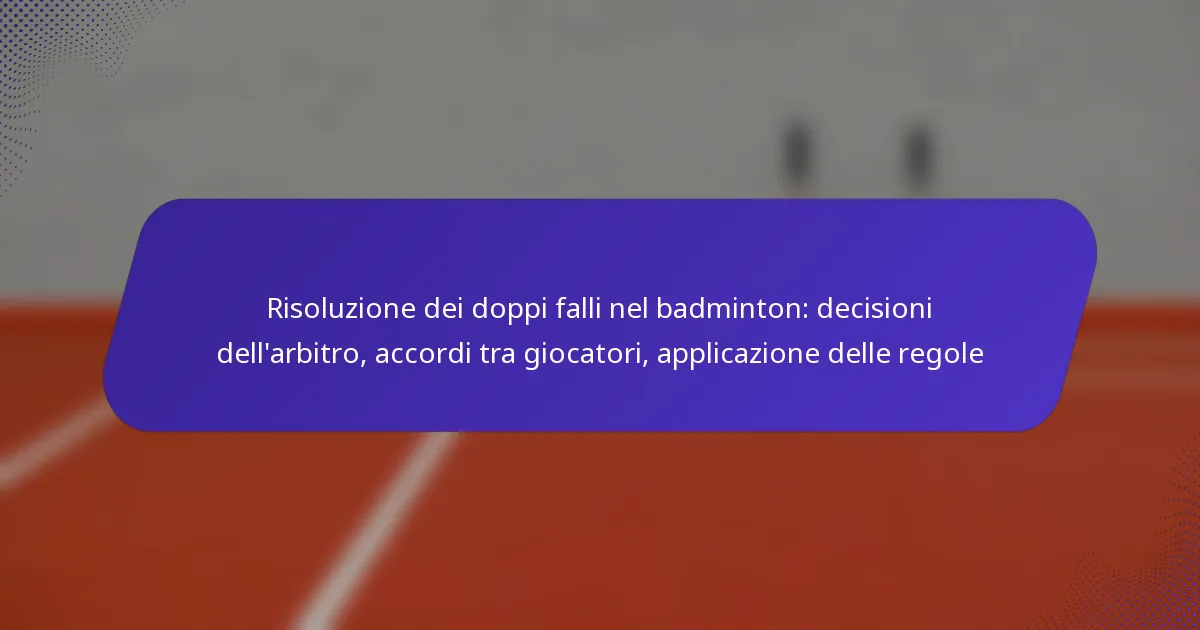 Nel badminton a coppie, la risoluzione dei falli è un aspetto critico che coinvolge le decisioni dell’arbitro, gli accordi tra i giocatori e l’applicazione rigorosa delle regole. Il ruolo dell’arbitro è fondamentale per effettuare chiamate accurate e garantire un gioco equo, mentre gli accordi tra i giocatori possono migliorare la comunicazione e ridurre le controversie. Una comprensione approfondita delle regole stabilite è essenziale sia per i giocatori che per gli ufficiali per mantenere l’integrità del gioco.