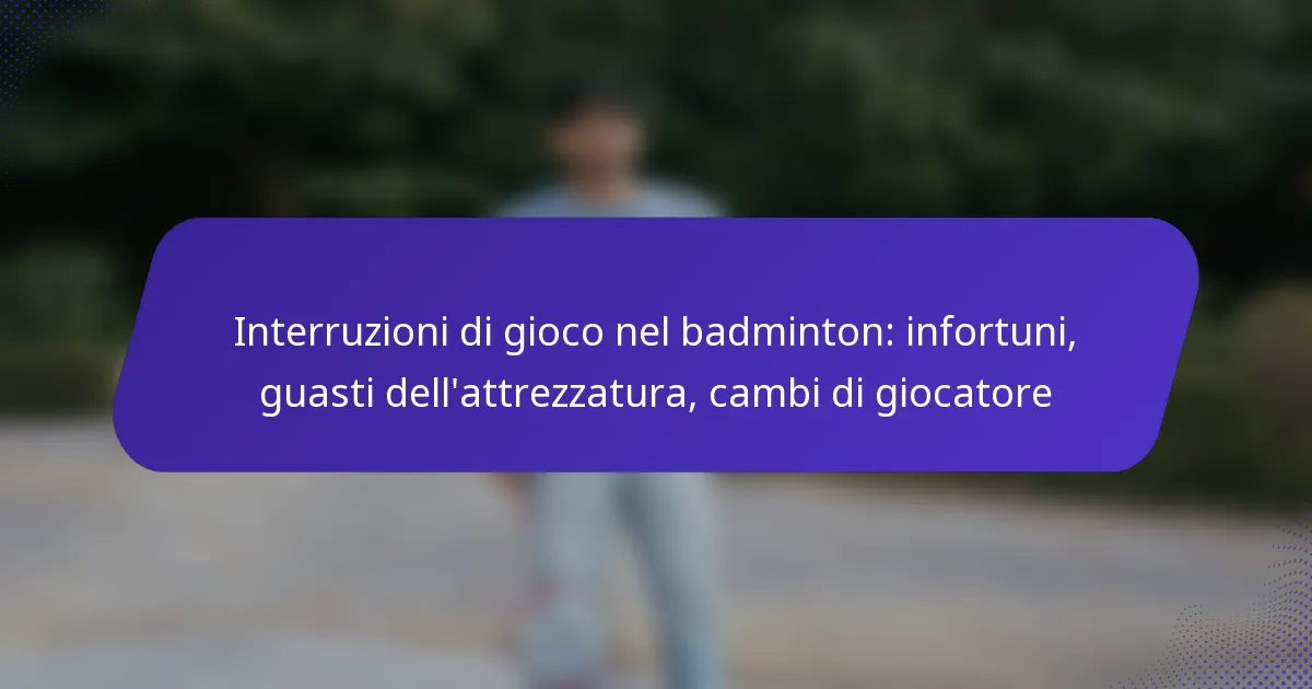 Nel badminton a coppie, le interruzioni possono derivare da infortuni, guasti all’attrezzatura o cambi di giocatori. Ogni tipo influisce sul flusso della partita e richiede protocolli specifici per essere gestito efficacemente.